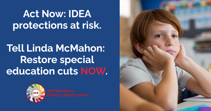 Please send your letter to Linda McMahon, urging her to restore OSERS cuts immediately. She PROMISED to protect IDEA and the children it serves.